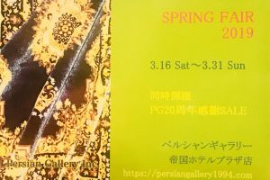 3月17(土)~4月1日(日) 11:00~19:00 ペルシャ絨毯、ギャベ、伝統工芸品からインテリ
